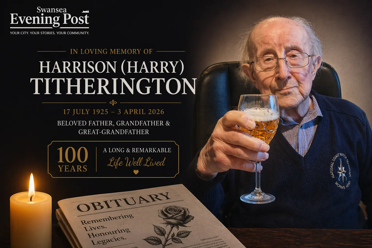 The Swansea community is mourning the peaceful passing of Harrison “Harry” Titherington, a deeply cherished Swansea resident who died on Good Friday, 3 April 2026, at the remarkable age of 100 years old. His passing marks the end of a long and celebrated life that touched generations of family across South Wales and beyond.